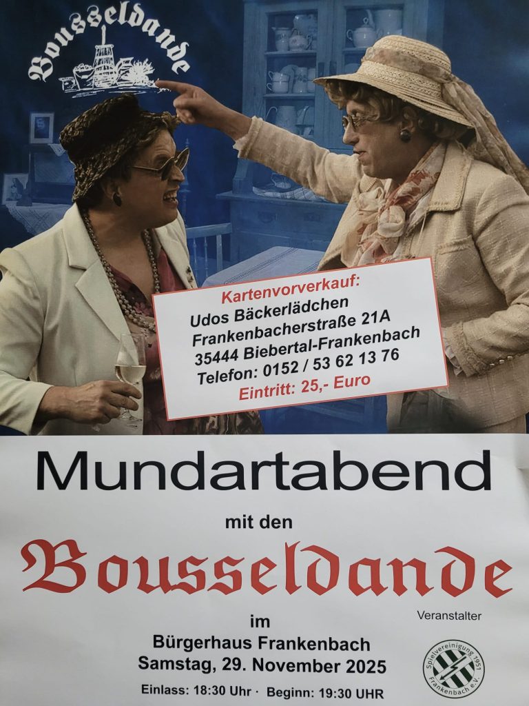 Lassen Sie sich von den Bousseldande in einen etwas anderen Alltag entführen: In mittelhessischer Mundart, gepaart mit einer gehörigen Portion Mutterwitz meistern sie so manche Situation, die mit ihren überraschenden Pointen zum Lachen oder Nachdenken anregen.